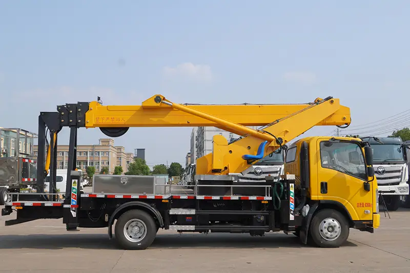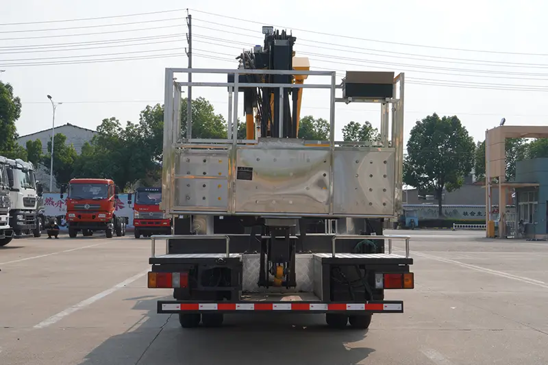 รถบรรทุกยกพื้นสูง 22 เมตรคันนี้ติดตั้งระบบความปลอดภัยครบชุดเพื่อความปลอดภัยในการใช้งาน: อุปกรณ์เชื่อมต่อระหว่างยานพาหนะส่วนบนและส่วนล่าง ปั๊มไฮดรอลิกไฟฟ้าฉุกเฉิน ล็อคไฮดรอลิกสองทาง และบาลานซ์วาล์วเพื่อป้องกันบูมล้มโดยไม่ตั้งใจ มาตรวัดระดับยานพาหนะสำหรับการตรวจสอบการเอียงแบบเรียลไทม์เพื่อหลีกเลี่ยงความเสี่ยงในการพลิกคว่ำ ระบบปรับระดับกระบอกสูบปริมาตรเท่ากันสำหรับการปรับระดับแท่นอัตโนมัติ การจำกัดโหลดอัจฉริยะและระบบแจ้งเตือนการทำงานที่เป็นอันตราย รวมถึงการทดสอบโหลดแบบไดนามิกและคงที่ของโรงงานอย่างเข้มงวด เพื่อให้มั่นใจในความปลอดภัยสูงสุดภายใต้สภาวะการทำงานทั้งหมด