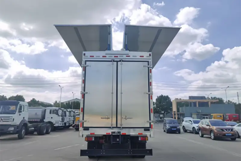 ประสิทธิภาพการจัดการสูงเป็นพิเศษ: ระบบไฮดรอลิกแบบกางออกด้วยปุ่มเดียว แผงปีกเปิดและปิดได้ภายใน 1 นาที สร้างช่องทางการทำงานที่กว้าง ช่วยให้รถยกทำงานจากหลายด้านในเวลาเดียวกัน ลดเวลาในการขนถ่ายลง 60% เมื่อเทียบกับรถบรรทุกตู้แบบเดิม เหมาะอย่างยิ่งสำหรับการขนถ่ายสินค้าบ่อยครั้งและสินค้าขนาดใหญ่