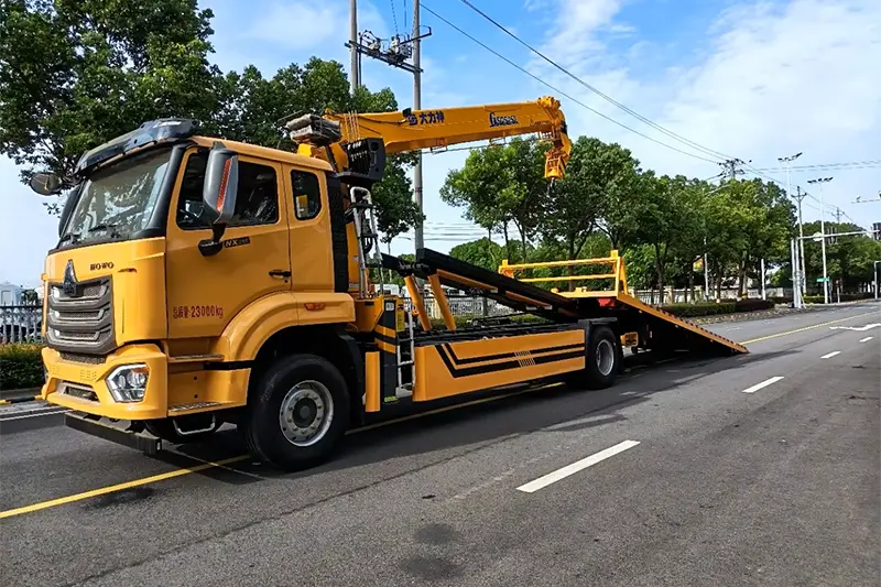 Sinotruk Howo 4*2 One Drag Two Wrecker Truck พร้อมเครน 8T เป็นยานพาหนะพิเศษเพื่อการกู้ภัยบนท้องถนนสำหรับงานหนักอเนกประสงค์ ซึ่งรวมการลากจูง การยก และการถ่ายโอนยานพาหนะที่ชำรุด ออกแบบมาเพื่อการช่วยเหลือบนทางหลวง การจัดการการจราจรในเมือง การช่วยเหลือทางวิศวกรรม และสถานการณ์การจัดการข้อบกพร่องของยานพาหนะขนาดใหญ่ แตกต่างจากเครื่องทำลายเอกสารแบบฟังก์ชันเดียวทั่วไป โมเดลนี้ผสมผสานระหว่างพื้นเรียบรับน้ำหนัก 10 ตัน แขนลากจูงแบบยืดไสลด์ 8 ตัน และเครนแขนตรง XCMG 8 ตัน ทำให้มีฟังก์ชั่นคู่ของการลากจูง 2 ครั้งและการยกในสถานที่ ซึ่งช่วยปรับปรุงประสิทธิภาพการช่วยเหลือและการปรับฉากได้อย่างมาก เป็นอุปกรณ์หลักสำหรับทีมกู้ภัยทางถนน หน่วยงานบังคับใช้กฎหมายจราจร และสถานประกอบการซ่อมรถยนต์ โดยมีสมรรถนะที่มั่นคงและความสามารถในการรับน้ำหนักที่แข็งแกร่งเพื่อรองรับงานกู้ภัยที่ซับซ้อนต่างๆ